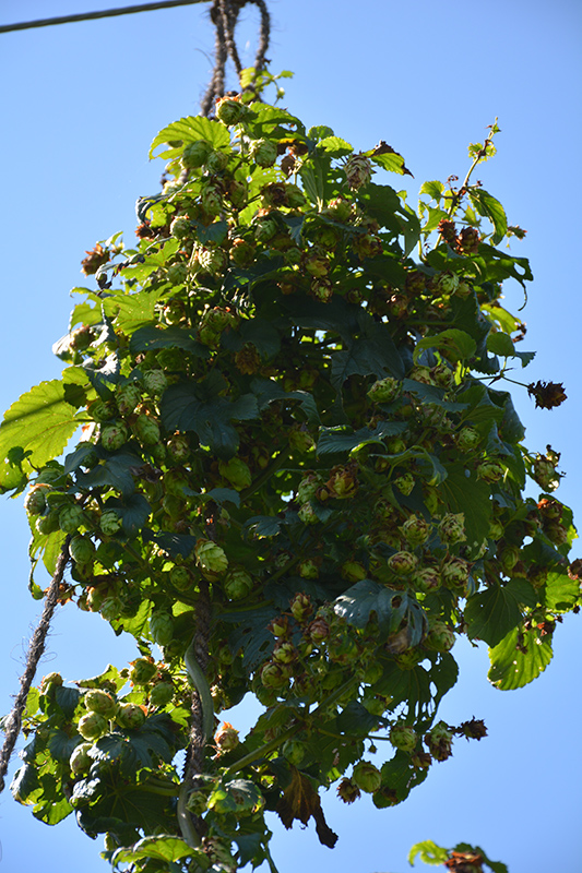 Crystal Hops will grow to be about 20 feet tall at maturity, with a spread of 3 feet. As a climbing vine, it should either be planted near a fence, trellis or other landscape structure where it can be trained to grow upwards on it, or allowed to trail off a retaining wall or slope. Although it's not a true annual, this fast-growing plant can be expected to behave as an annual in our climate if left outdoors over the winter, usually needing replacement the following year. As such, gardeners should take into consideration that it will perform differently than it would in its native habitat. This is a dioecious species, meaning that individual plants are either male or female. Only the females will produce fruit, and a male variety of the same species is required nearby as a pollinator.