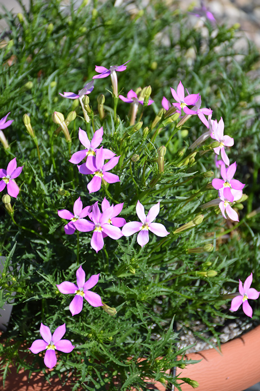 FIZZ N POP™ Pretty in Pink Isotoma is a fine choice for the garden, but it is also a good selection for planting in outdoor containers and hanging baskets. It is often used as a 'filler' in the 'spiller-thriller-filler' container combination, providing a mass of flowers against which the thriller plants stand out. Note that when growing plants in outdoor containers and baskets, they may require more frequent waterings than they would in the yard or garden.