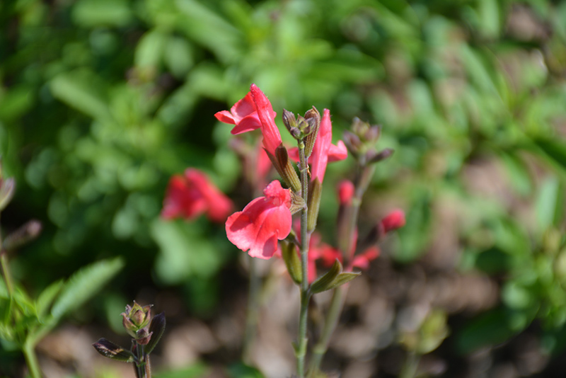 Arctic Blaze® Red Sage has masses of beautiful spikes of coral-pink flowers with red overtones and burgundy calyces rising above the foliage from mid spring to mid fall, which emerge from distinctive dark red flower buds, and which are most effective when planted in groupings. The flowers are excellent for cutting. Its attractive fragrant pointy leaves remain green in colour throughout the season. The dark red stems can be quite attractive.