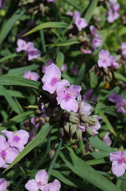 Perrine's Pink Spiderwort will grow to be about 18 inches tall at maturity, with a spread of 24 inches. When grown in masses or used as a bedding plant, individual plants should be spaced approximately 18 inches apart. It grows at a fast rate, and under ideal conditions can be expected to live for approximately 10 years. As an herbaceous perennial, this plant will usually die back to the crown each winter, and will regrow from the base each spring. Be careful not to disturb the crown in late winter when it may not be readily seen! As this plant tends to go dormant in summer, it is best interplanted with late-season bloomers to hide the dying foliage.