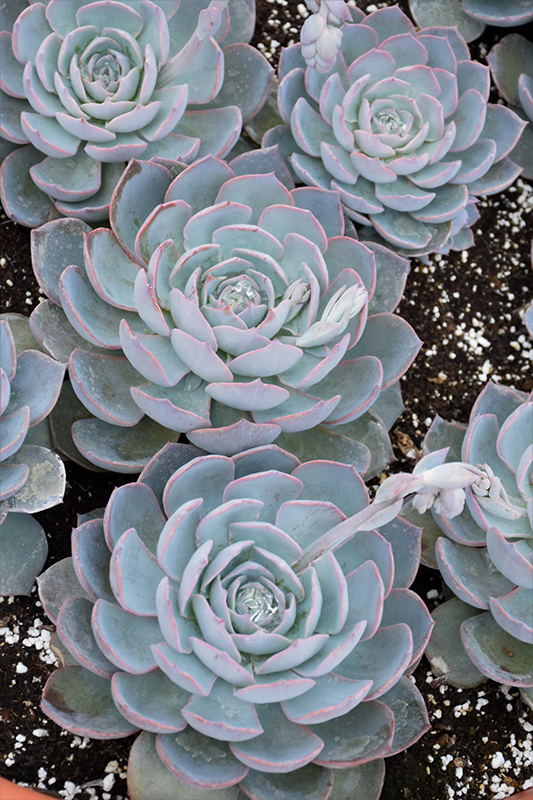 Subsessilis Blue Echeveria is a dense herbaceous evergreen perennial with tall flower stalks held atop a low mound of foliage. Its relatively fine texture sets it apart from other garden plants with less refined foliage.