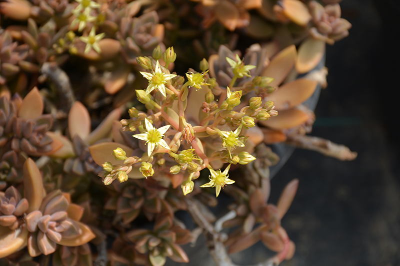 California Sunset Graptosedum will grow to be about 8 inches tall at maturity extending to 12 inches tall with the flowers, with a spread of 10 inches. When grown in masses or used as a bedding plant, individual plants should be spaced approximately 8 inches apart. Its foliage tends to remain low and dense right to the ground. It grows at a medium rate, and under ideal conditions can be expected to live for approximately 15 years. As an evegreen perennial, this plant will typically keep its form and foliage year-round.