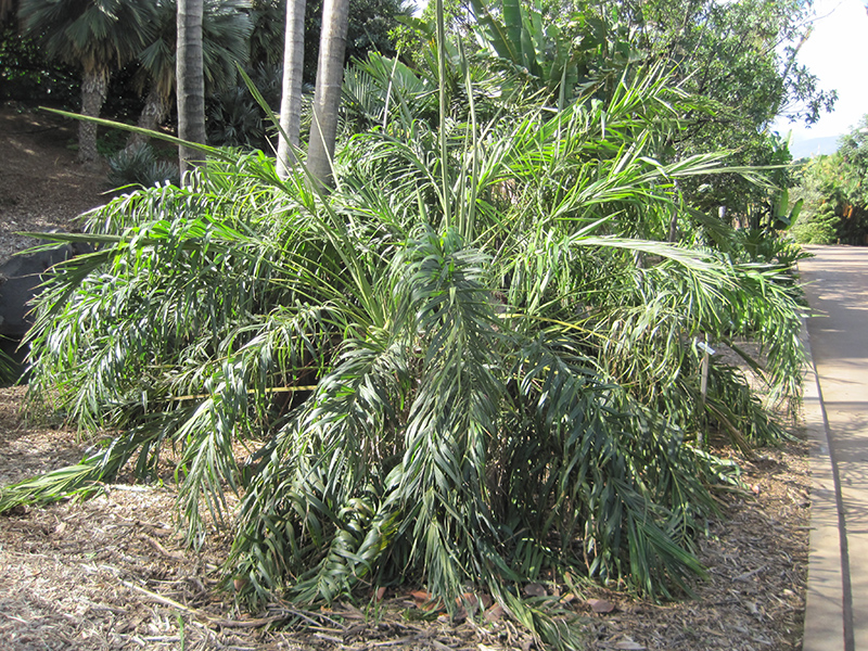 Seashore Palm is a multi-stemmed evergreen shrub with a shapely form and gracefully arching branches. Its relatively coarse texture can be used to stand it apart from other landscape plants with finer foliage.