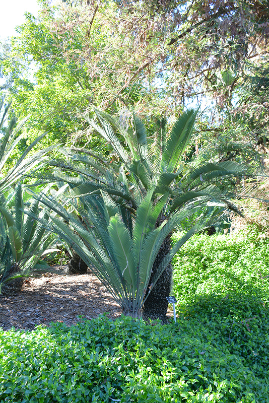A very slow growing cycad with radiating fern like leaves; will develop a trunk over a long period; an attractive accent or container plant that prefers moist, well drained, fertile soil; hardy, and tolerant of light frost and drought