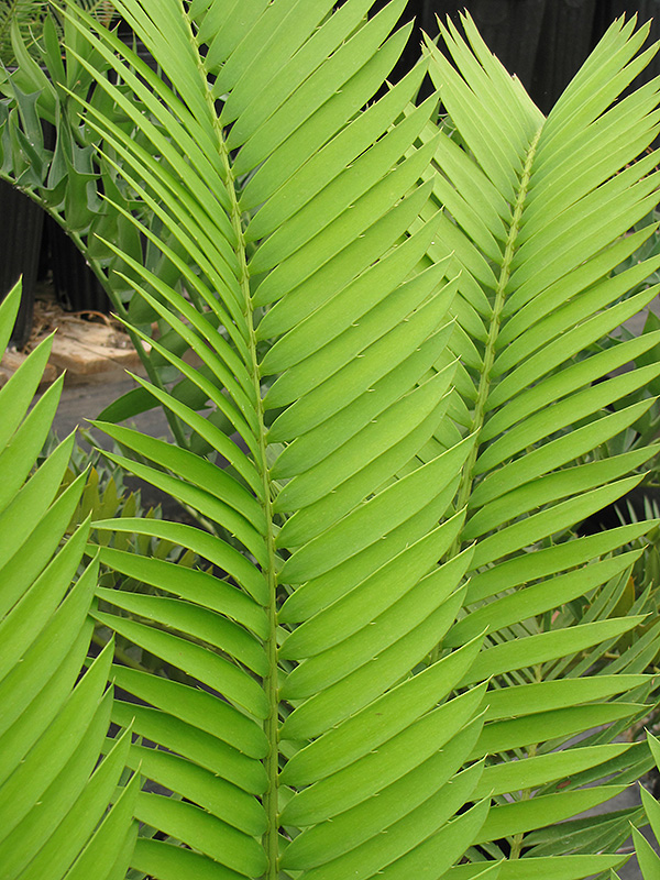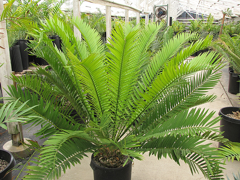 A small to medium sized cycad with pinnate, blue tinted, gray-green leaves; develops a branched trunk over a long period; an attractive accent or container plant; must have well drained soil; thrives in desert climates; tolerant of light frost