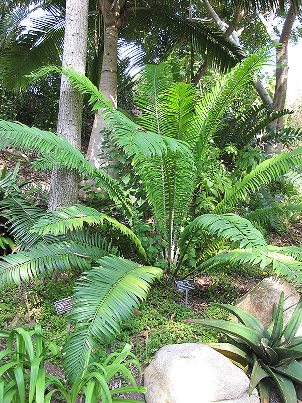 Poor Man's Cycad will grow to be about 7 feet tall at maturity, with a spread of 12 feet. It has a low canopy with a typical clearance of 1 foot from the ground, and is suitable for planting under power lines. It grows at a fast rate, and under ideal conditions can be expected to live to a ripe old age of 100 years or more; think of this as a heritage shrub for future generations! This is a dioecious species, meaning that individual plants are either male or female. Only the females will produce fruit, and a male variety of the same species is required nearby as a pollinator.