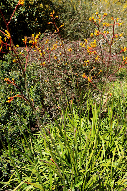 Yellow Gem Kangaroo Paw will grow to be about 30 inches tall at maturity extending to 5 feet tall with the flowers, with a spread of 24 inches. When grown in masses or used as a bedding plant, individual plants should be spaced approximately 18 inches apart. Although it's not a true annual, this plant can be expected to behave as an annual in our climate if left outdoors over the winter, usually needing replacement the following year. As such, gardeners should take into consideration that it will perform differently than it would in its native habitat.