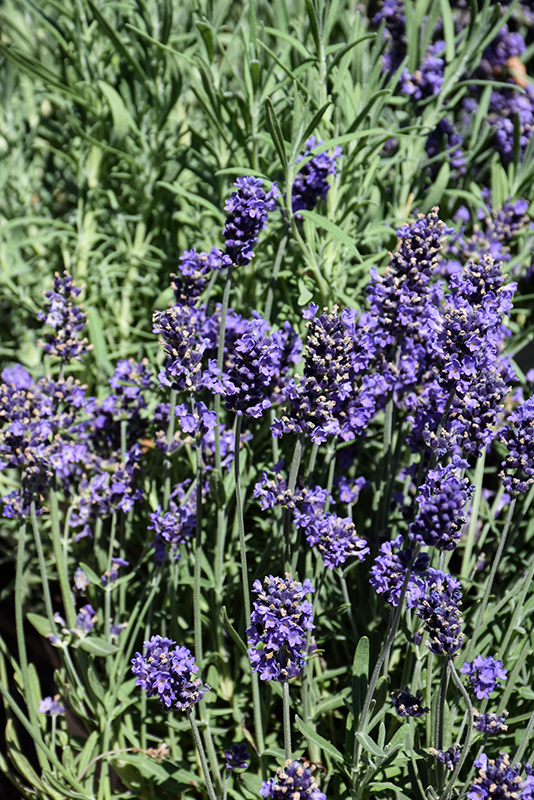 Aromatico Blue Lavender will grow to be about 14 inches tall at maturity, with a spread of 14 inches. When grown in masses or used as a bedding plant, individual plants should be spaced approximately 12 inches apart. Its foliage tends to remain dense right to the ground, not requiring facer plants in front. Although it's not a true annual, this slow-growing plant can be expected to behave as an annual in our climate if left outdoors over the winter, usually needing replacement the following year. As such, gardeners should take into consideration that it will perform differently than it would in its native habitat.