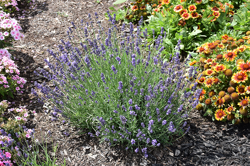 A compact, bushy selection featuring stunning, deep lavender-blue flowers in summer; dense foliage is grayish-green and very aromatic; dense and nicely mounded; a perfect choice for edging or containers