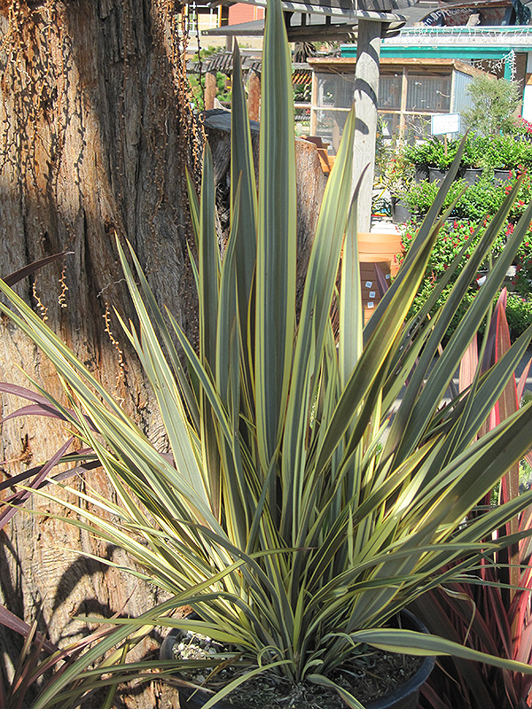 Alison Blackman New Zealand Flax is primarily valued in the landscape or garden for its interesting and distinctive form. Its attractive large sword-like leaves remain olive green in colour with prominent buttery yellow stripes and tinges of coppery-bronze throughout the year.