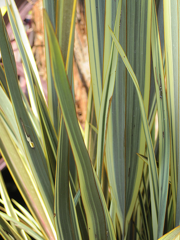 A stunning perennial presenting large olive-green to bronze, sword-like leaves with pale yellow stripes and orange-red margins; beautiful and eye catching as an accent in the garden or massed along borders; also a great center for a mixed container