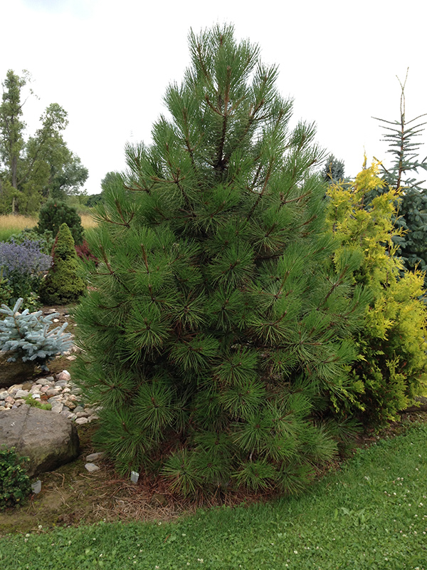 Washoe Pine is primarily valued in the landscape for its distinctively pyramidal habit of growth. It has grayish green evergreen foliage. The needles remain grayish green throughout the winter. The shaggy brick red bark adds an interesting dimension to the landscape.