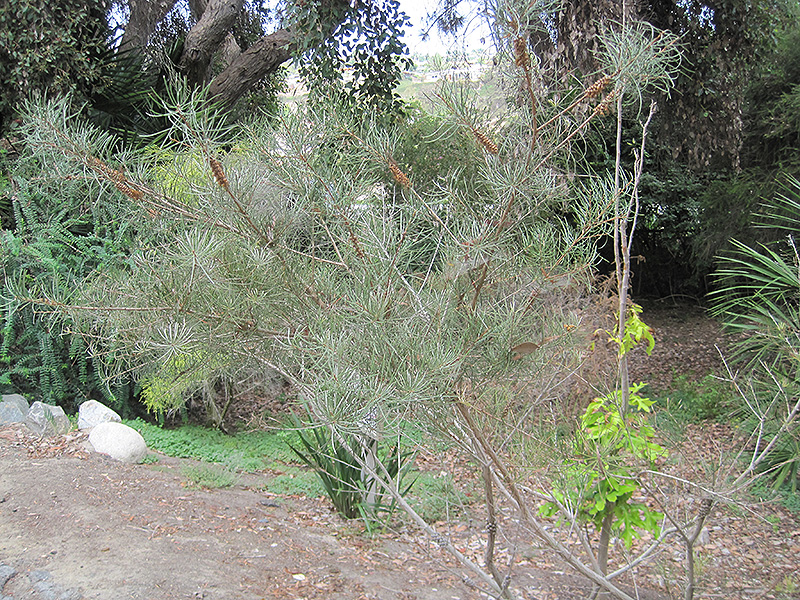 Pine-leaved Bottlebrush features showy spikes of red catkins with lime green overtones at the ends of the branches from early spring to mid summer. It has attractive grayish green foliage with hints of silver. The small fragrant needles are highly ornamental and remain grayish green throughout the winter.