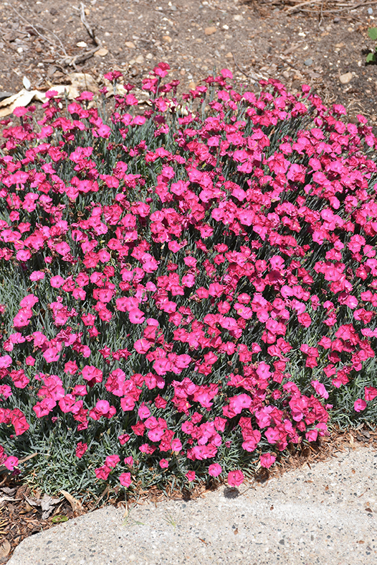 Paint The Town Fancy Pinks is smothered in stunning fragrant rose frilly flowers with fuchsia overtones and red centers at the ends of the stems from early summer to early fall. The flowers are excellent for cutting. Its attractive narrow leaves remain powder blue in colour with hints of grayish green throughout the year.