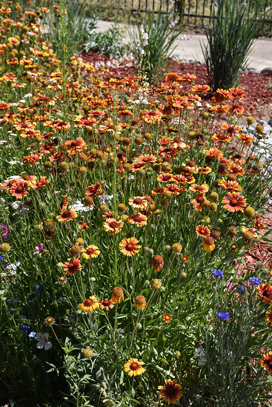 Blanket Flower will grow to be about 12 inches tall at maturity extending to 24 inches tall with the flowers, with a spread of 12 inches. When grown in masses or used as a bedding plant, individual plants should be spaced approximately 10 inches apart. Its foliage tends to remain dense right to the ground, not requiring facer plants in front. It grows at a fast rate, and under ideal conditions can be expected to live for approximately 5 years. As an herbaceous perennial, this plant will usually die back to the crown each winter, and will regrow from the base each spring. Be careful not to disturb the crown in late winter when it may not be readily seen!