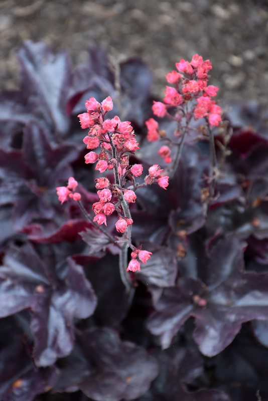 Black Forest Cake Coral Bells is a dense herbaceous evergreen perennial with tall flower stalks held atop a low mound of foliage. Its relatively fine texture sets it apart from other garden plants with less refined foliage.