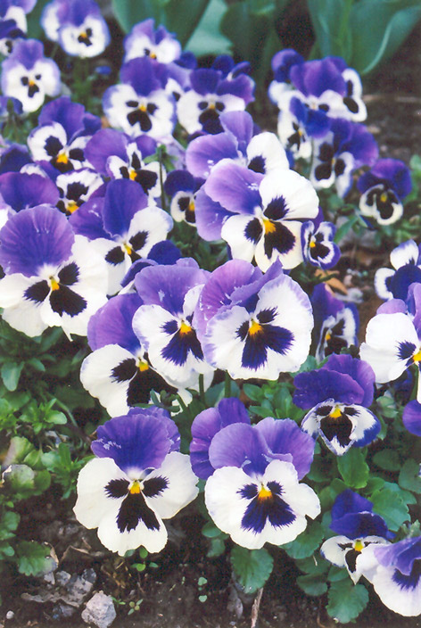 Baby Bingo Pansy has masses of beautiful white flowers with blue overtones, yellow eyes and indigo centers at the ends of the stems from early spring to late fall, which are most effective when planted in groupings. Its crinkled round leaves remain green in colour throughout the season.