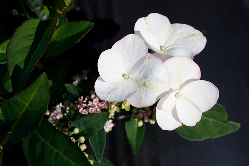 A beautiful compact shrub that features large white and pink lace cap flowers that bloom earlier and longer than other cultivars; lavender tones in acidic soils; dark green foliage with good fall color; a wonderful choice for the flower garden or border