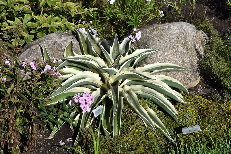 Bridal Falls Mangave is primarily valued in the garden for its cascading habit of growth. Its attractive large serrated sword-like leaves remain bluish-green in colour with distinctive creamy white edges and tinges of burgundy throughout the season.