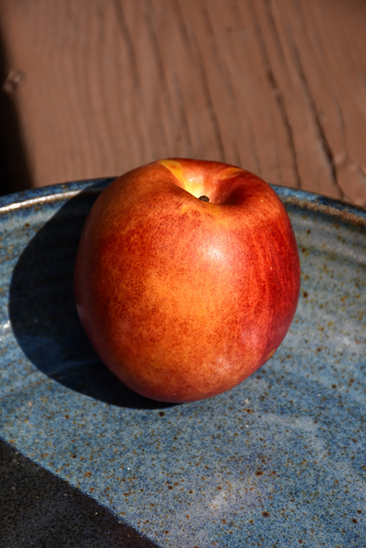 Goldmine Nectarine is a small tree that is commonly grown for its edible qualities, although it does have ornamental merits as well. It produces gold round fruit (technically 'drupes') with a red blush and white flesh which are usually ready for picking from early to mid summer. Note that the fruits have hard inedible pits inside which must be removed before eating or processing. The fruits have a sweet taste and a juicy texture.