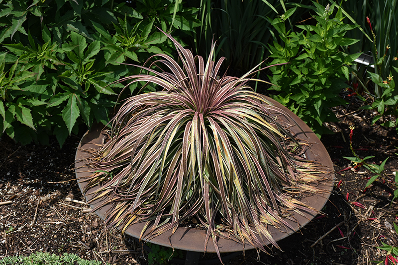 This attractive selection produces a rosette of numerous, thin, green leaves that cascade downward and spread out, with creamy margins and irregular burgundy spotting, becoming solid at tips; a great low-maintenance patio plant; must have good drainage