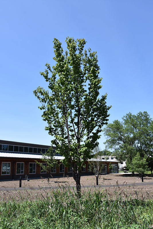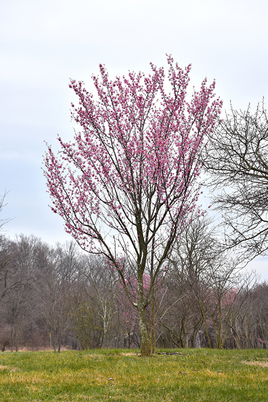 A beautiful, disease resistant specimen tree, featuring a stunning display of pink flowers in early spring before the leaves; its narrow vase habit, ornamental glossy reddish-brown bark, and good fall color make this a great accent tree on the landscape