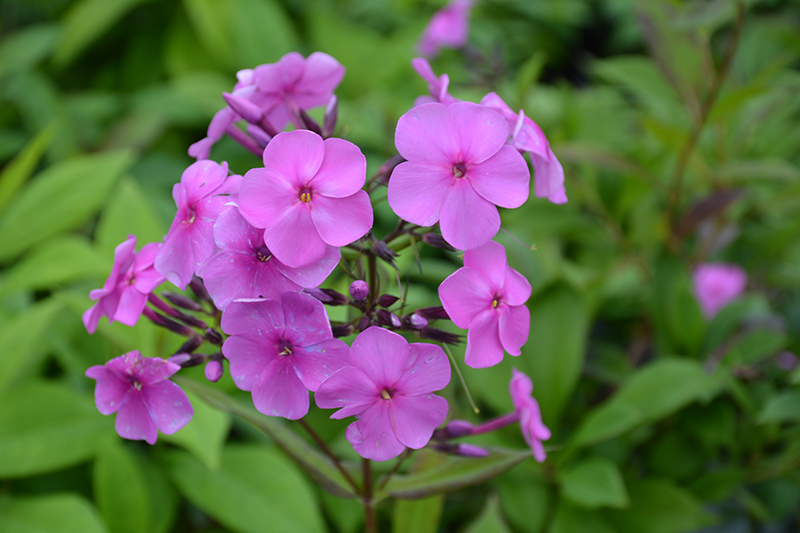 Super Ka-Pow™ Pink Garden Phlox features bold fragrant conical pink star-shaped flowers with hot pink eyes at the ends of the stems from late spring to late summer. The flowers are excellent for cutting. Its narrow leaves remain green in colour throughout the season.