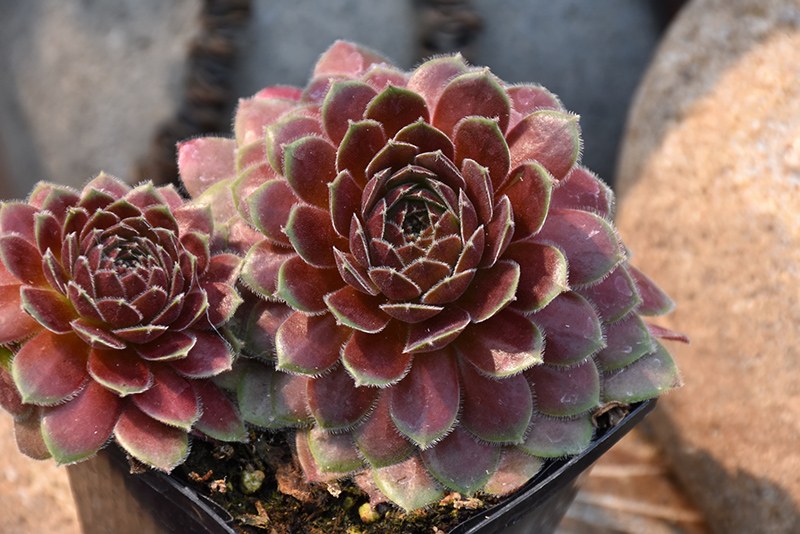 Chick Charms® Berry Bomb™ Hens And Chicks will grow to be only 2 inches tall at maturity extending to 8 inches tall with the flowers, with a spread of 6 inches. When grown in masses or used as a bedding plant, individual plants should be spaced approximately 6 inches apart. Its foliage tends to remain low and dense right to the ground. It grows at a medium rate, and under ideal conditions can be expected to live for approximately 20 years. As an herbaceous perennial, this plant will usually die back to the crown each winter, and will regrow from the base each spring. Be careful not to disturb the crown in late winter when it may not be readily seen!