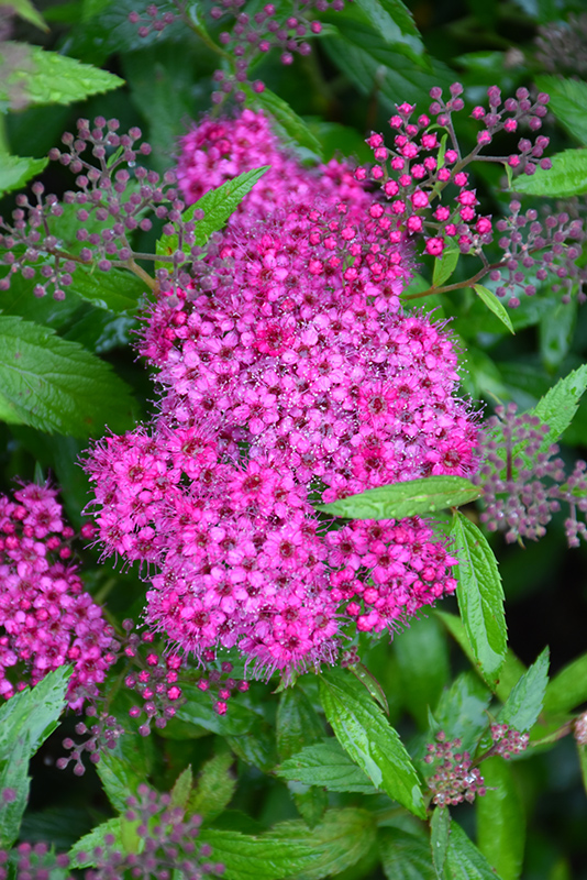 Red Lace™ Spirea features showy clusters of fuchsia flowers with red overtones at the ends of the branches from late spring to early summer. It has attractive bluish-green deciduous foliage which emerges coral-pink in spring. The small serrated pointy leaves are highly ornamental and turn an outstanding coppery-bronze in the fall.