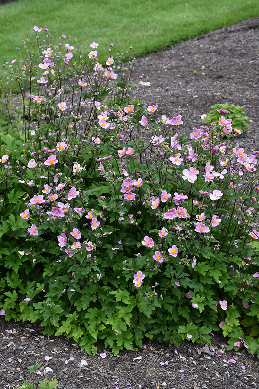 Pink Saucer Anemone will grow to be about 24 inches tall at maturity extending to 3 feet tall with the flowers, with a spread of 24 inches. Its foliage tends to remain dense right to the ground, not requiring facer plants in front. The flower stalks can be weak and so it may require staking in exposed sites or excessively rich soils. It grows at a medium rate, and under ideal conditions can be expected to live for approximately 10 years. As an herbaceous perennial, this plant will usually die back to the crown each winter, and will regrow from the base each spring. Be careful not to disturb the crown in late winter when it may not be readily seen! As this plant tends to go dormant in summer, it is best interplanted with late-season bloomers to hide the dying foliage.