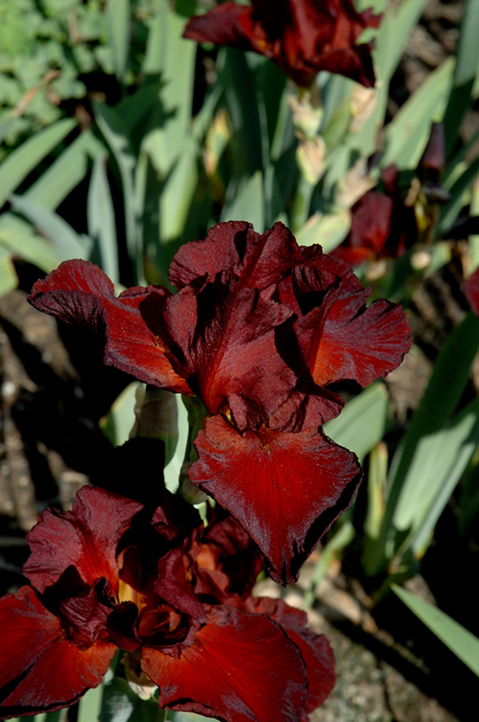 An exuberant tall iris, producing luminous, bright and shiny blooms that are solid, unfading red; a stunning addition to the perennial border; also excellent massed in groupings in the garden; will quickly form dense colonies