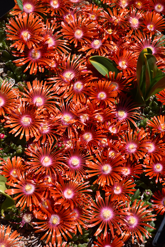 Red Mountain® Flame Ice Plant features showy red daisy flowers with orange overtones and white eyes rising above the foliage from early summer to mid fall. Its attractive small succulent narrow leaves are green in colour. As an added bonus, the foliage turns a gorgeous burgundy in the fall.