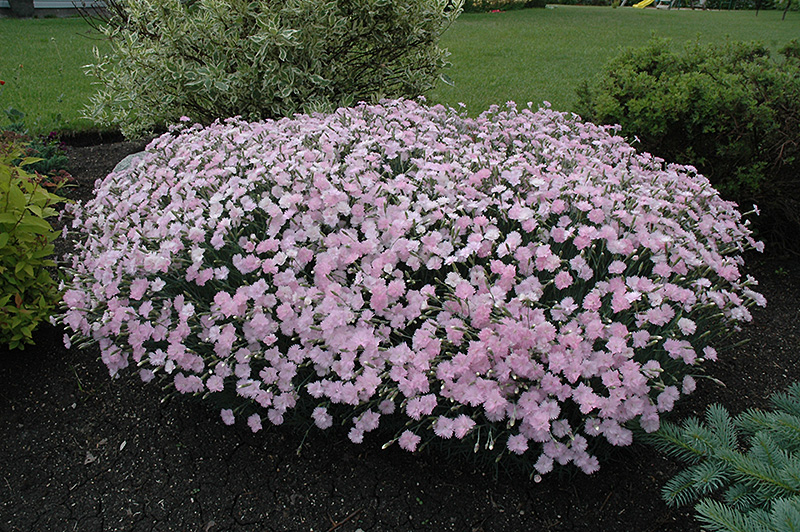 Mountain Mist Pinks is an herbaceous evergreen perennial with a mounded form. It brings an extremely fine and delicate texture to the garden composition and should be used to full effect.