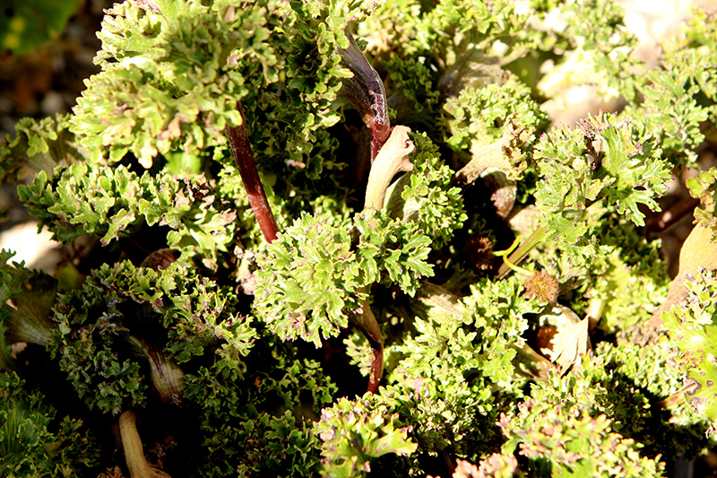 Wavy Gravy Leopard Plant's attractive small crinkled lobed leaves remain grayish green in colour throughout the year on a plant with a mounded habit of growth. It features subtle clusters of yellow daisy flowers rising above the foliage in early fall.
