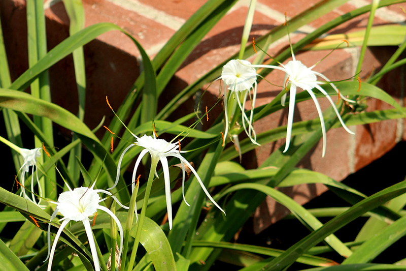 Spider Lily features showy spikes of fragrant white spider-like flowers rising above the foliage from late summer to early fall. Its glossy sword-like leaves remain green in colour throughout the season.