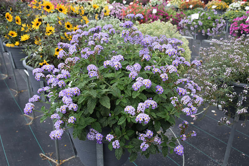 Augusta™ Lavender Heliotrope has masses of beautiful clusters of fragrant lavender flowers with yellow eyes at the ends of the stems from late spring to early fall, which are most effective when planted in groupings. Its textured pointy leaves remain light green in colour throughout the season.