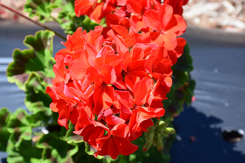 Pinto™ Premium Deep Scarlet Geranium will grow to be about 14 inches tall at maturity, with a spread of 12 inches. When grown in masses or used as a bedding plant, individual plants should be spaced approximately 10 inches apart. Its foliage tends to remain dense right to the ground, not requiring facer plants in front. Although it's not a true annual, this fast-growing plant can be expected to behave as an annual in our climate if left outdoors over the winter, usually needing replacement the following year. As such, gardeners should take into consideration that it will perform differently than it would in its native habitat.