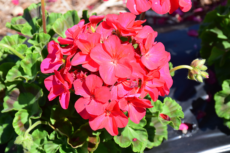 Pinto™ Premium Violet Geranium will grow to be about 14 inches tall at maturity, with a spread of 12 inches. When grown in masses or used as a bedding plant, individual plants should be spaced approximately 10 inches apart. Its foliage tends to remain dense right to the ground, not requiring facer plants in front. Although it's not a true annual, this fast-growing plant can be expected to behave as an annual in our climate if left outdoors over the winter, usually needing replacement the following year. As such, gardeners should take into consideration that it will perform differently than it would in its native habitat.