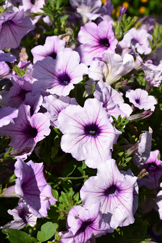 Opera Supreme™ Lilac Ice Petunia is clothed in stunning lilac purple trumpet-shaped flowers with deep purple throats at the ends of the stems from mid spring to mid fall. Its pointy leaves remain green in colour throughout the season.