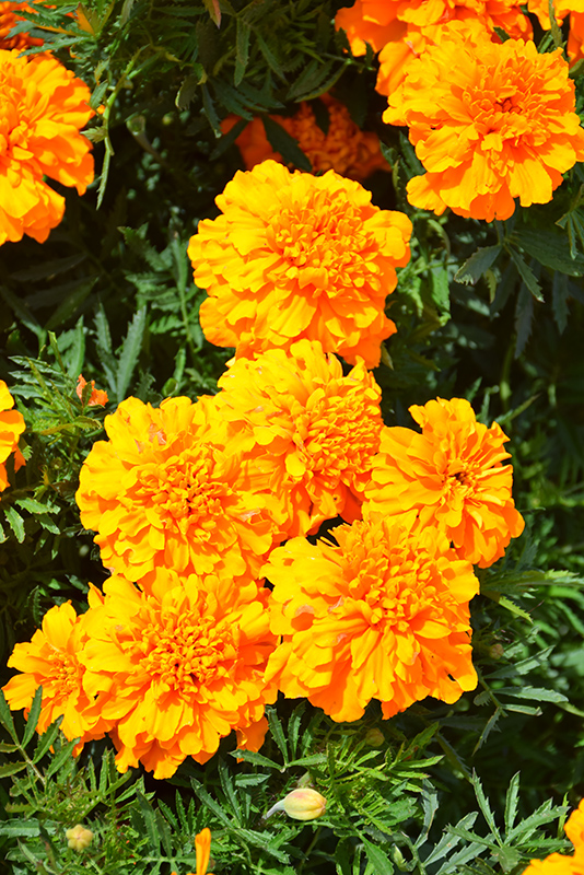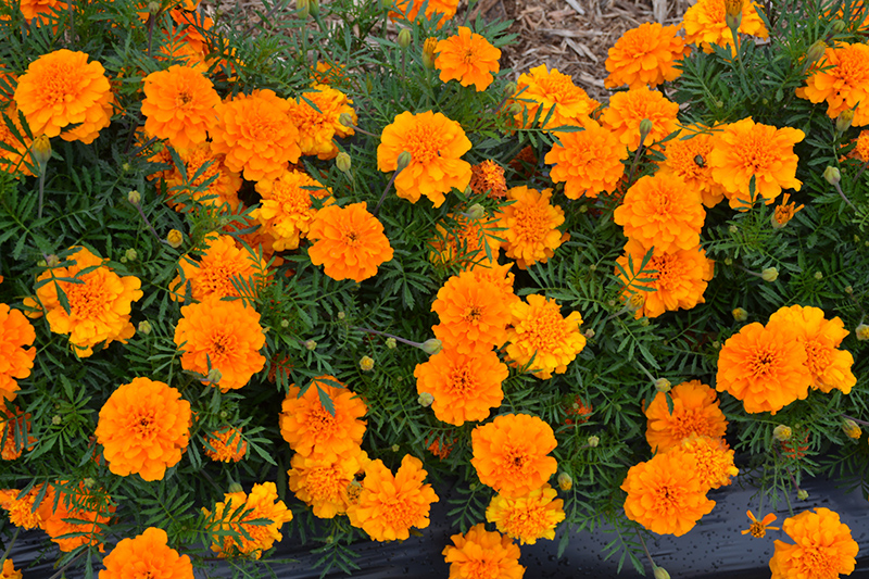 This beautiful compact and bushy variety produces bright orange blooms all season long; fragrant dark green fern-like foliage; low maintenance makes this plant ideal for patio containers, hanging baskets and garden landscapes