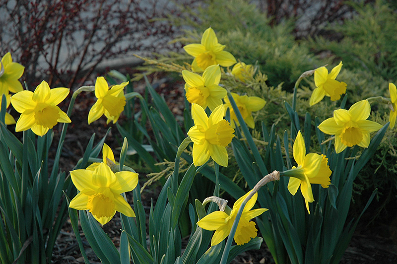 Arctic Gold Daffodil will grow to be about 12 inches tall at maturity extending to 16 inches tall with the flowers, with a spread of 10 inches. When grown in masses or used as a bedding plant, individual plants should be spaced approximately 6 inches apart. It grows at a medium rate, and under ideal conditions can be expected to live for approximately 10 years. As an herbaceous perennial, this plant will usually die back to the crown each winter, and will regrow from the base each spring. Be careful not to disturb the crown in late winter when it may not be readily seen! As this plant tends to go dormant in summer, it is best interplanted with late-season bloomers to hide the dying foliage.