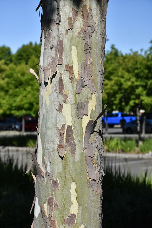 A fast growing California native tree, presenting interesting lobed and pointed leaves and beautiful mottled bark; a great shade tree for larger landscapes; tolerant of heat and wind, quite resistant to disease; salt and drought tolerant once established