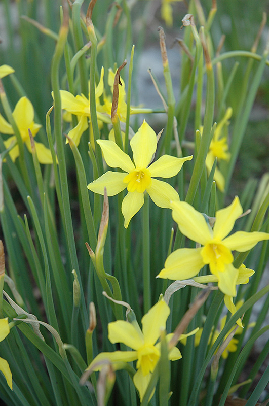 Campernell Daffodil will grow to be about 10 inches tall at maturity, with a spread of 6 inches. When grown in masses or used as a bedding plant, individual plants should be spaced approximately 4 inches apart. It grows at a medium rate, and under ideal conditions can be expected to live for approximately 10 years. As an herbaceous perennial, this plant will usually die back to the crown each winter, and will regrow from the base each spring. Be careful not to disturb the crown in late winter when it may not be readily seen! As this plant tends to go dormant in summer, it is best interplanted with late-season bloomers to hide the dying foliage.
