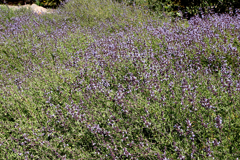 A beautiful, cascading, aromatic sage bearing clusters of light blue flowers, in dense whorls above the foliage in early spring; a compact, dense plant that thrives in various soil types and with little water; a dependable choice in the garden