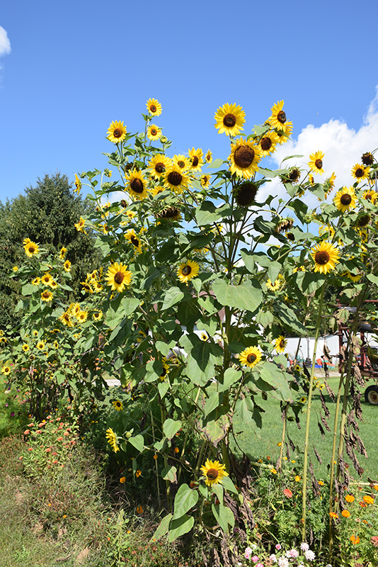 A beautiful, black seeded variety used for making natural dye; medium to large flower heads of bright golden yellow stand tall on stalks that reach upwards of 8ft. tall; seeds are edible and delicious when roasted and salted