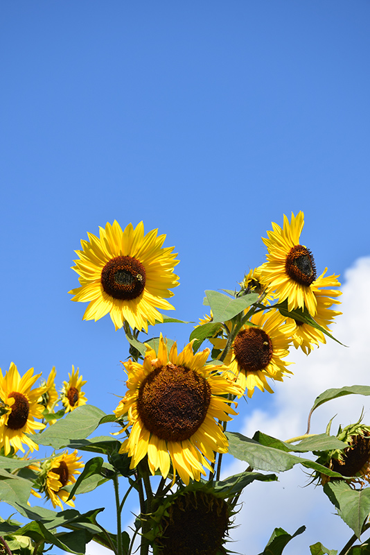 A vigorous and branching variety reaching the height of 14ft tall; produces golden yellow sunflowers with dark center discs over a period of time; petals can be added to salads or dried for tea, while the seeds can be roasted for snacks