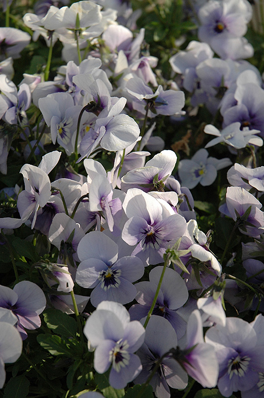Penny™ Marina Pansy has masses of beautiful sky blue flowers with plum purple overtones, yellow eyes and deep purple centers at the ends of the stems from early spring to late fall, which are most effective when planted in groupings. Its crinkled round leaves remain green in colour throughout the season.