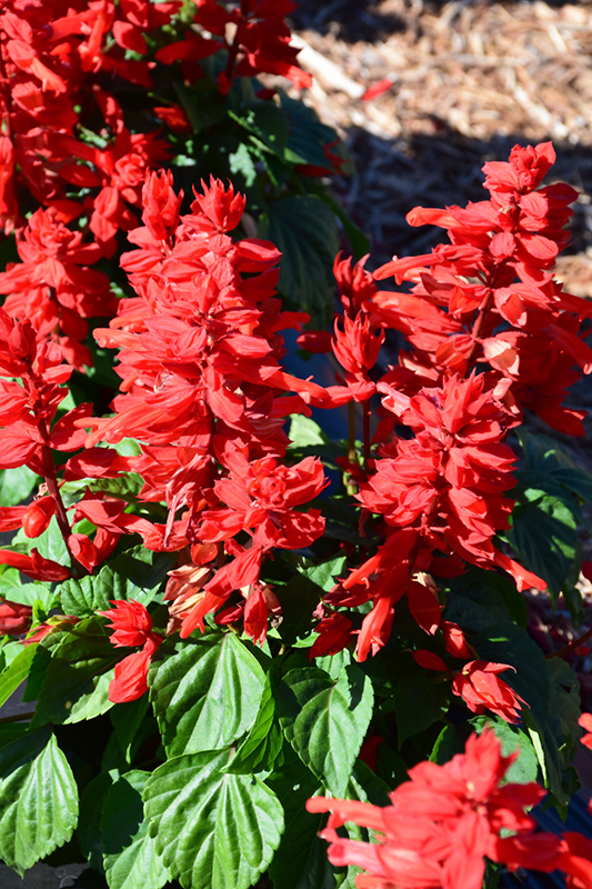 Mojave™ Red Salvia has masses of beautiful spikes of tomato-orange tubular flowers rising above the foliage from late spring to mid fall, which are most effective when planted in groupings. The flowers are excellent for cutting. Its glossy heart-shaped leaves remain forest green in colour throughout the season.