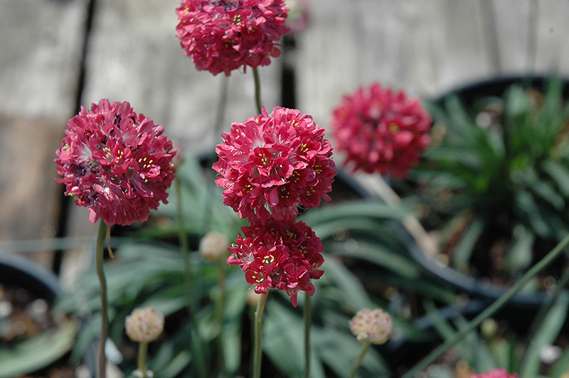 Tall stems with red globed flowers rise above mounded tuffs of deep green grass-like foliage; heat and drought tolerant, an excellent addition to borders, beds, containers and fresh-cut arrangements
