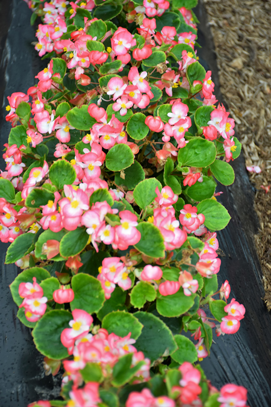 Bada Bing® Rose Bicolor Begonia will grow to be about 10 inches tall at maturity, with a spread of 8 inches. When grown in masses or used as a bedding plant, individual plants should be spaced approximately 6 inches apart. Its foliage tends to remain low and dense right to the ground. Although it's not a true annual, this plant can be expected to behave as an annual in our climate if left outdoors over the winter, usually needing replacement the following year. As such, gardeners should take into consideration that it will perform differently than it would in its native habitat.